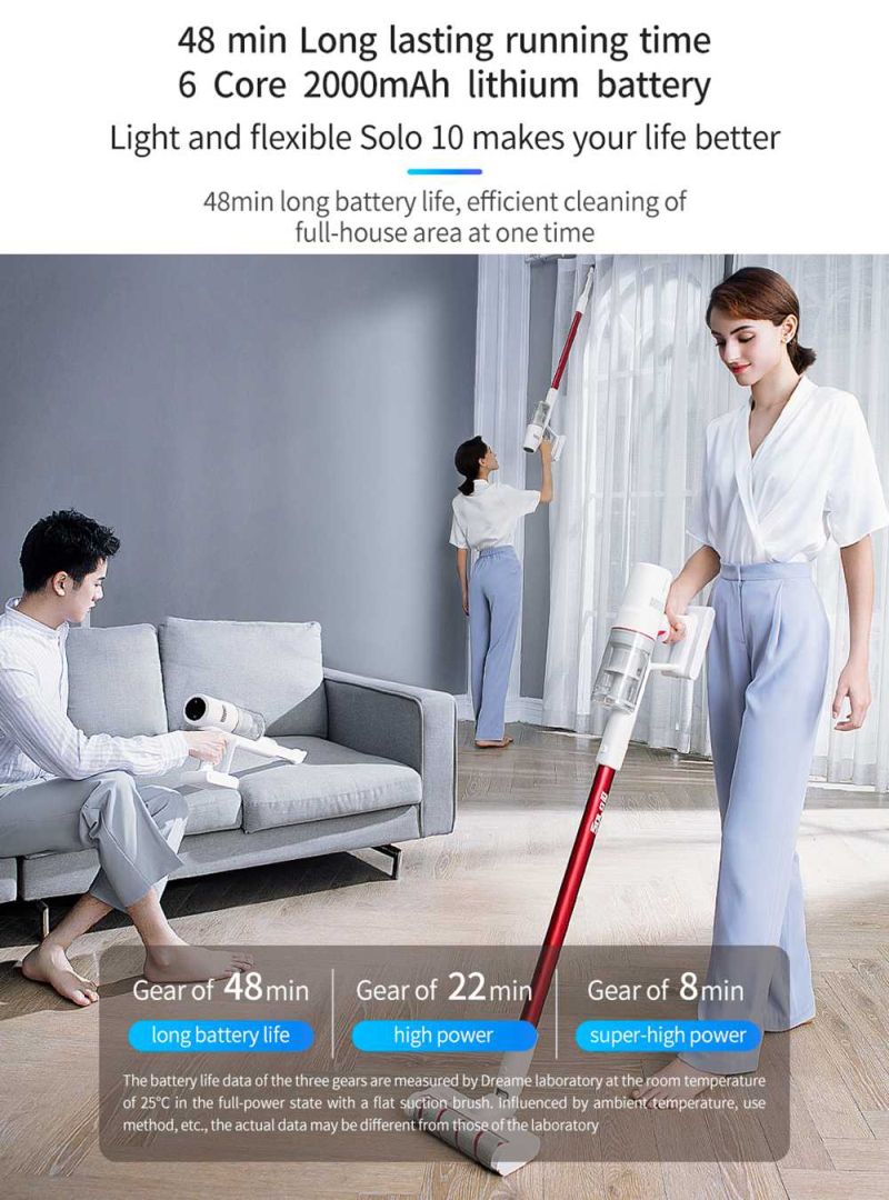 A szerkezet mérete 1227 x 227 milliméter, míg a tömege 2,6 kilogramm. Színe fehér-piros, a teljesítménye pedig kereken 300 W, a motor pedig 80 000 fordulat/percen képes üzemelni. Elsőre nem tűnik soknak, de a lényeg úgyis a szívóteljesítmény, amely 18 Kpa, ezzel az erővel az erősen szennyezett felületeket is játszi könnyedséggel megtisztíthatjuk. A koszt egy 0,4 literes portartályba gyűjti a porszívó, amelybe magától értetődően HEPA filter is került, hogy a lehető legkevesebb káros anyag jusson vissza a levegőbe.